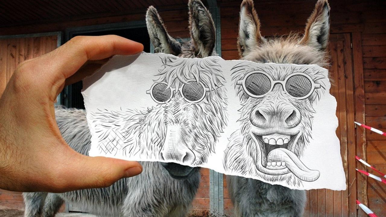 Wallpaper Drawing over a photo of donkeys