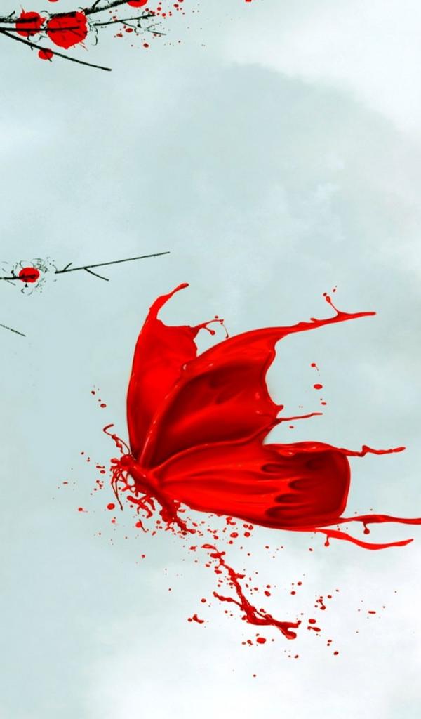 Wallpaper Red butterfly, Japanese drawing