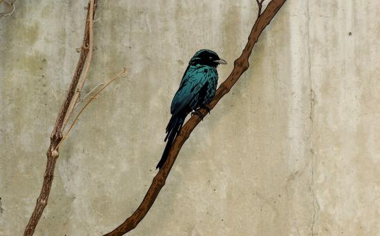 Wallpaper Rook on a branch, drawing on parchment