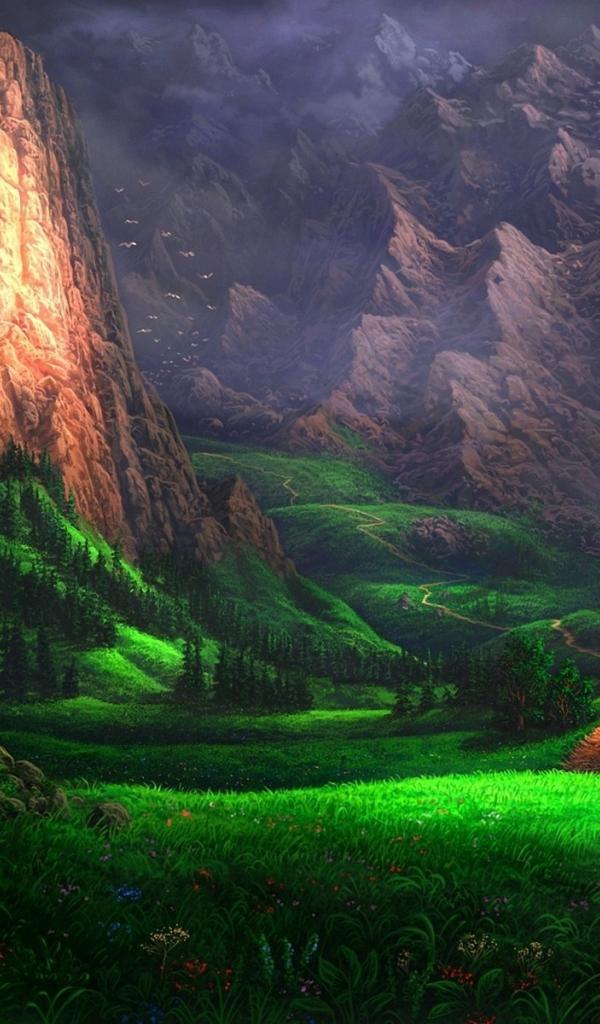 Wallpaper Road to the mountains, drawing