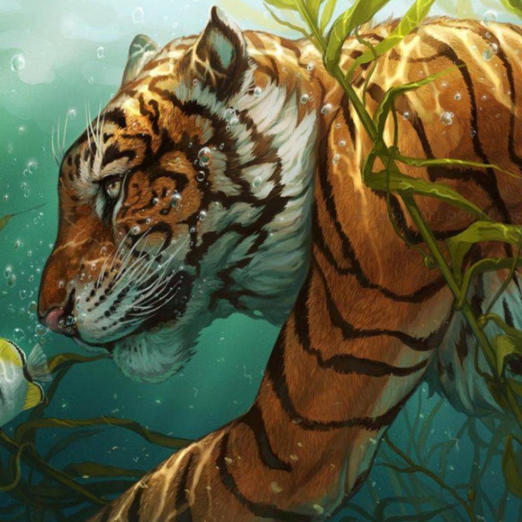 Wallpaper Tigr preys on fish