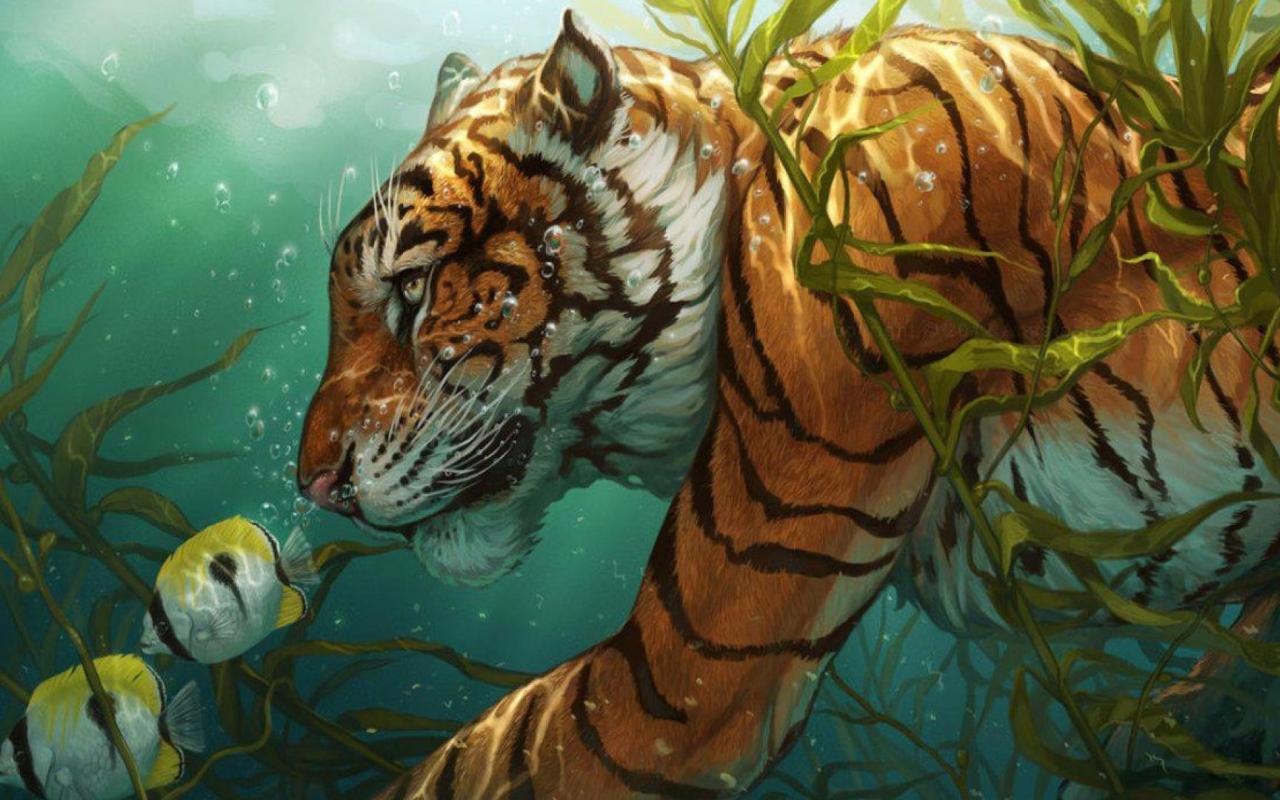 Wallpaper Tigr preys on fish