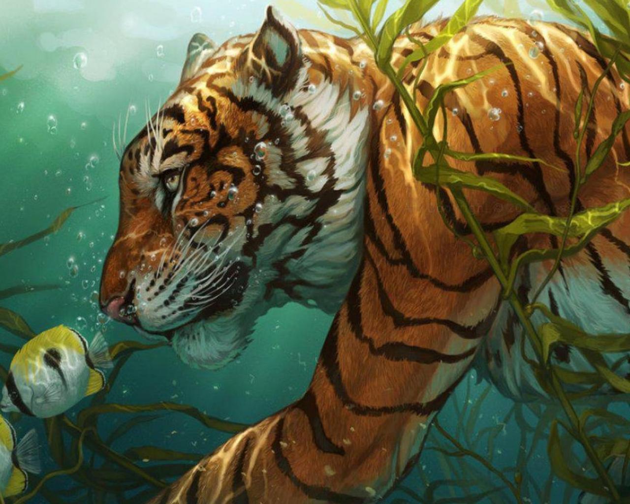 Wallpaper Tigr preys on fish
