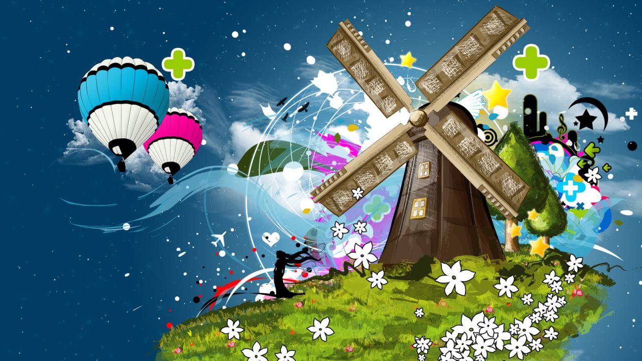 Wallpaper Windy mill on hanging island