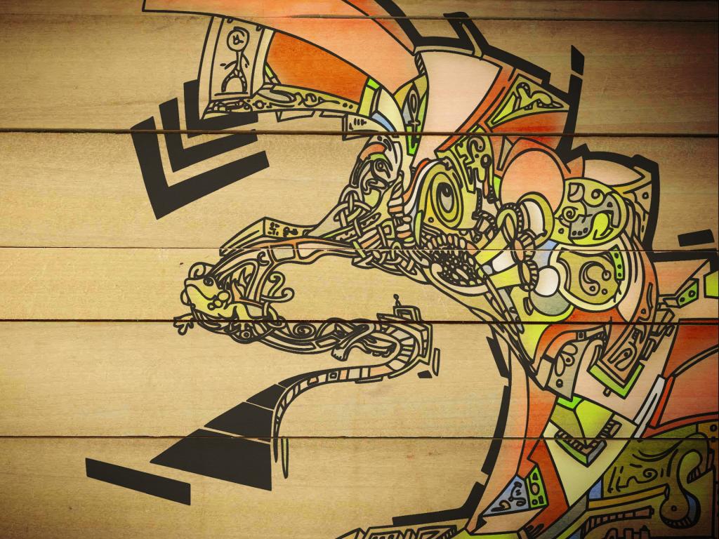 » Wallpaper Painting on wooden wall