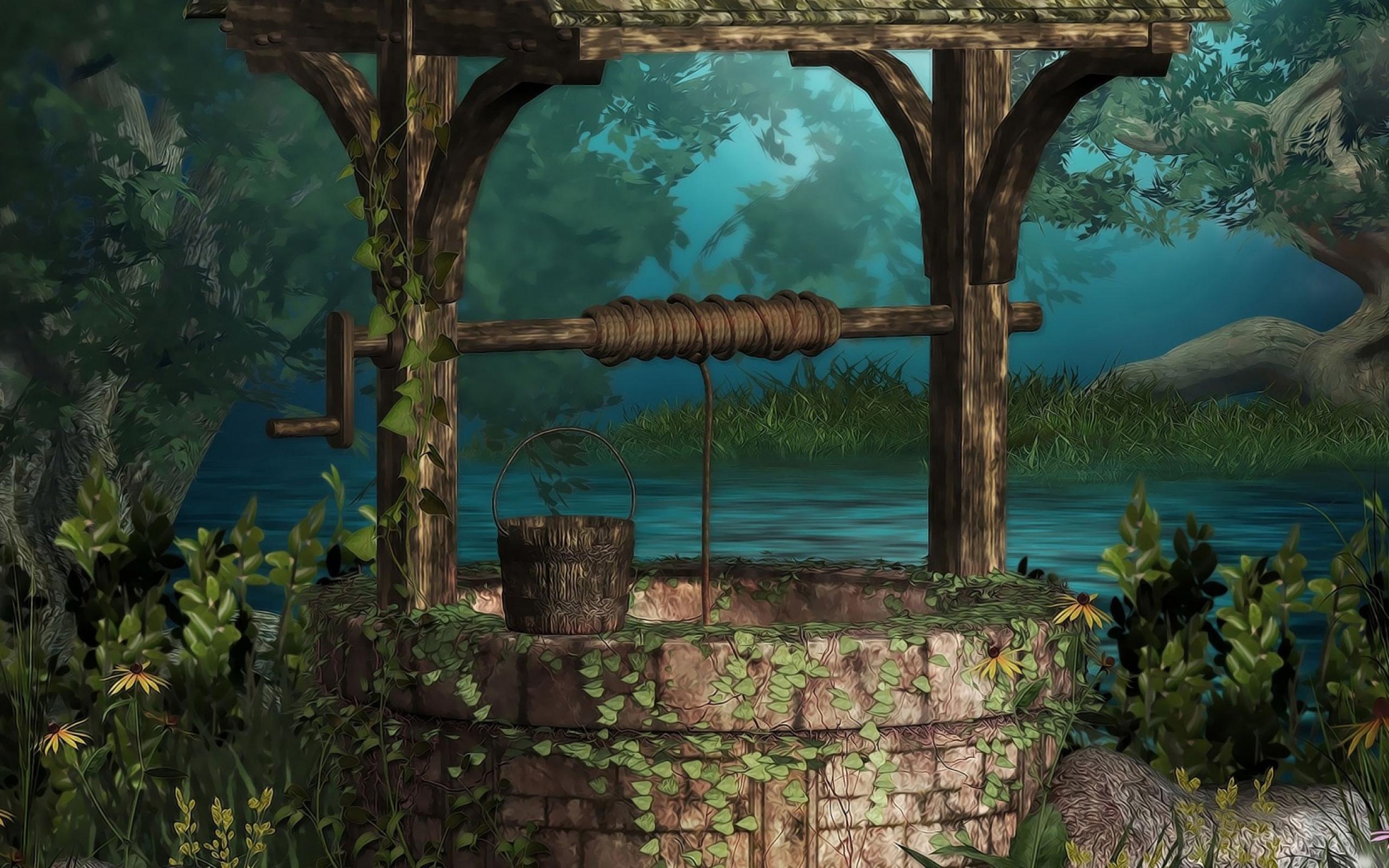 Wallpaper Stone well near the river