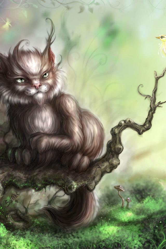 Wallpaper Fabulous cat and bird