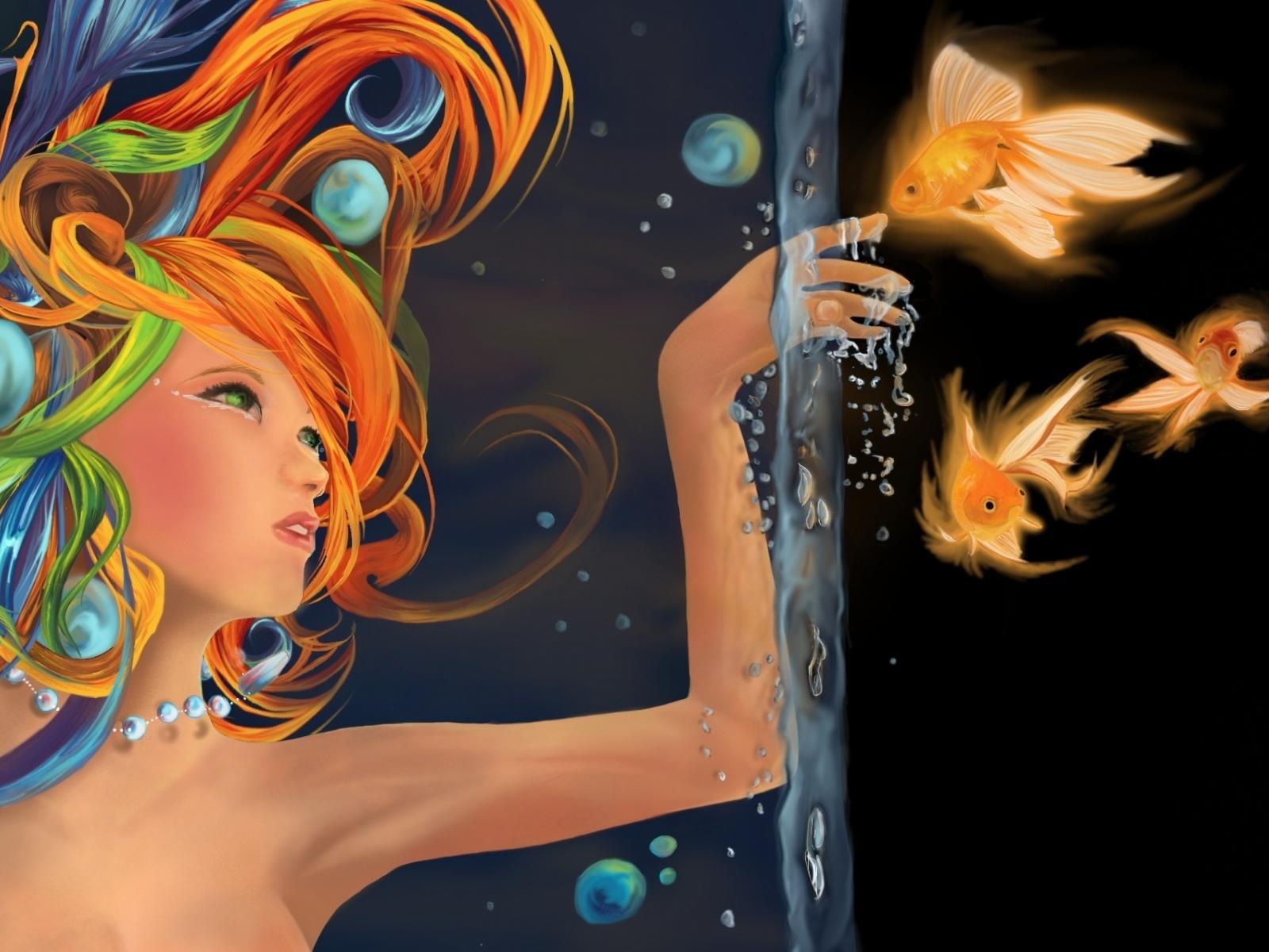 Wallpaper Mermaid and fish