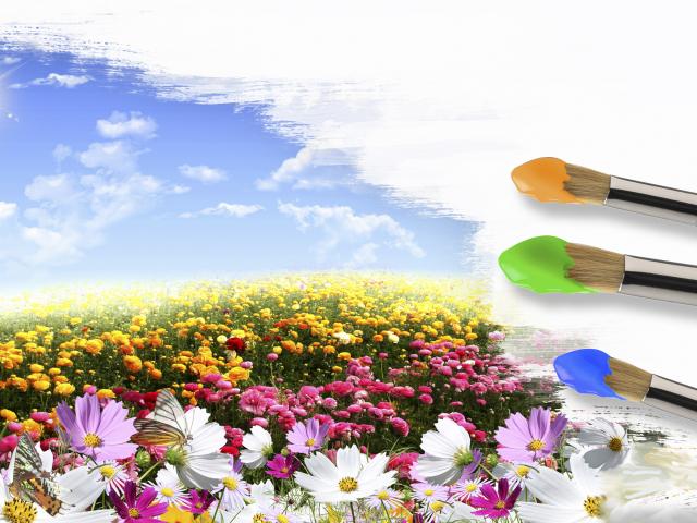 Wallpaper Field of flowers and brushes