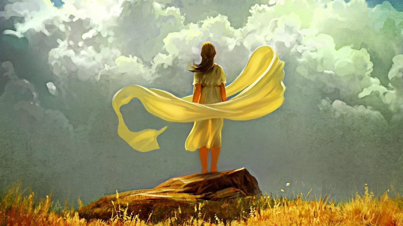 » Wallpaper Girl stands on the stone