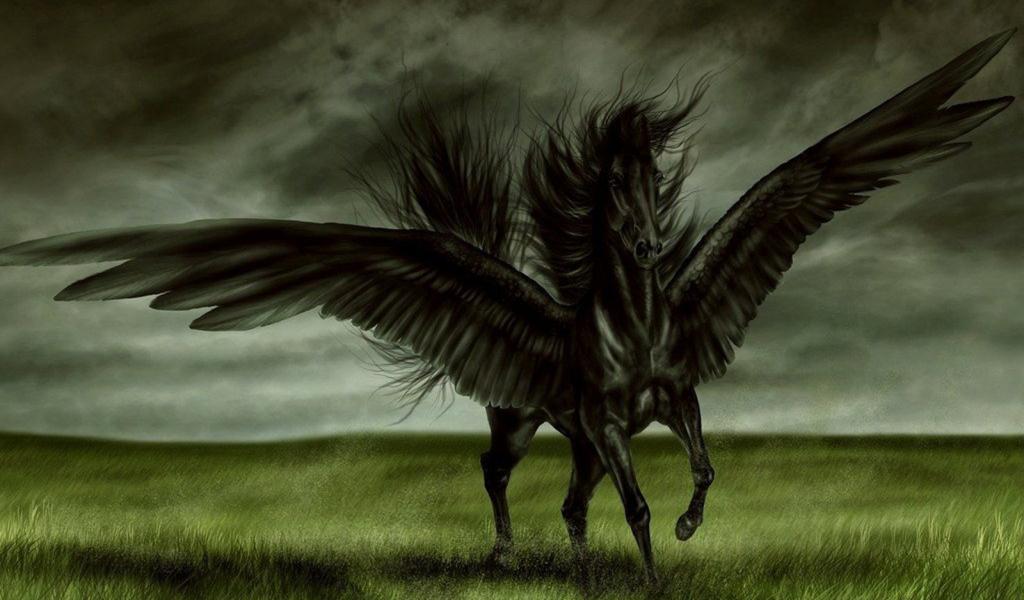 » Wallpaper Black horse with wings