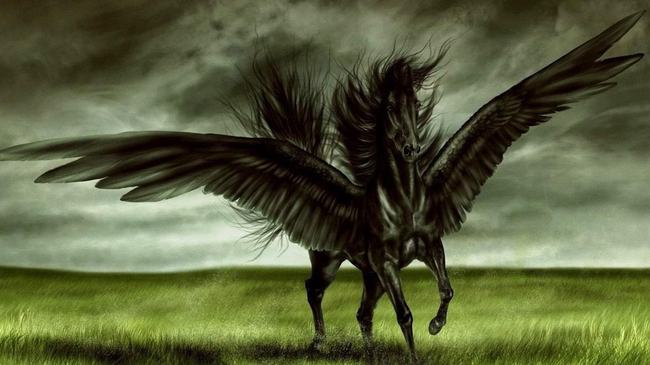 Wallpaper Black winged horse Pegasus
