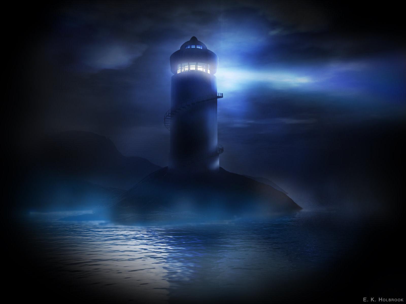 Wallpaper Lighthouse in the blue of the night