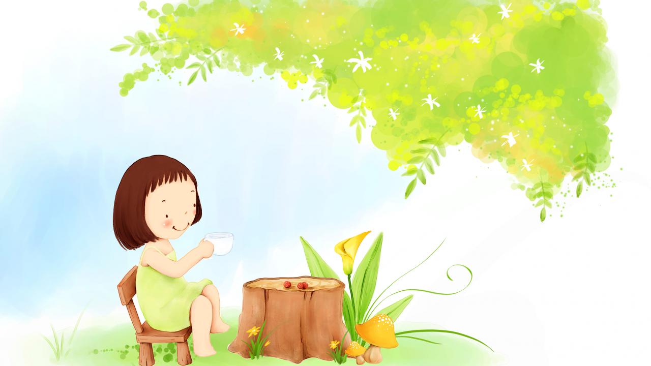 Wallpaper Little girl, tree stump