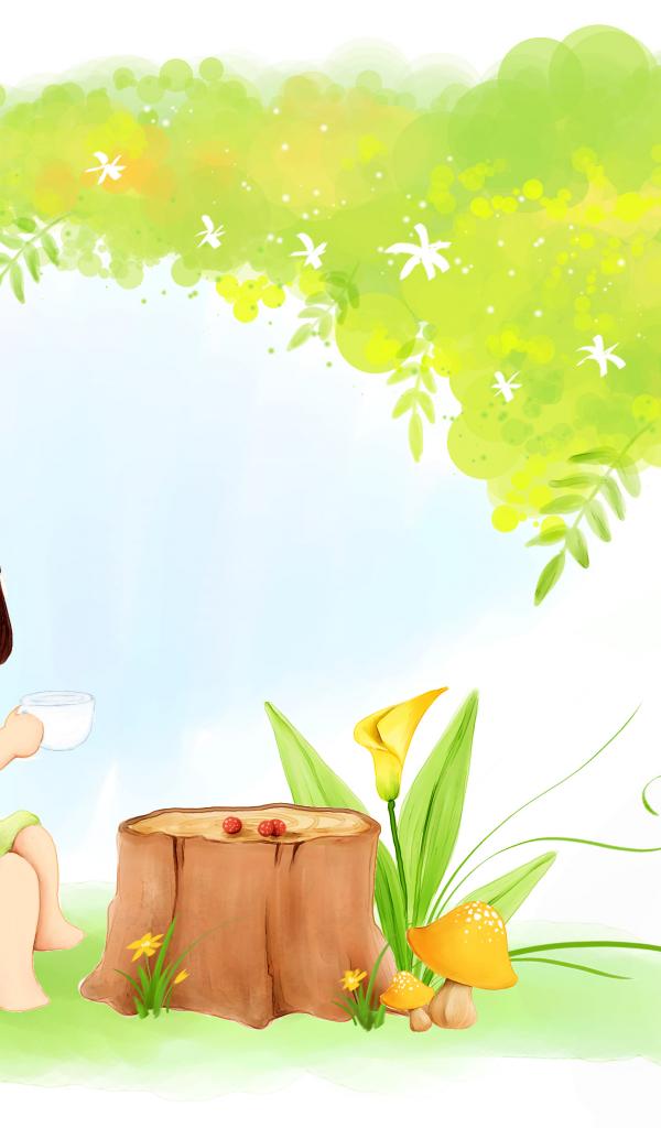 Wallpaper Little girl, tree stump