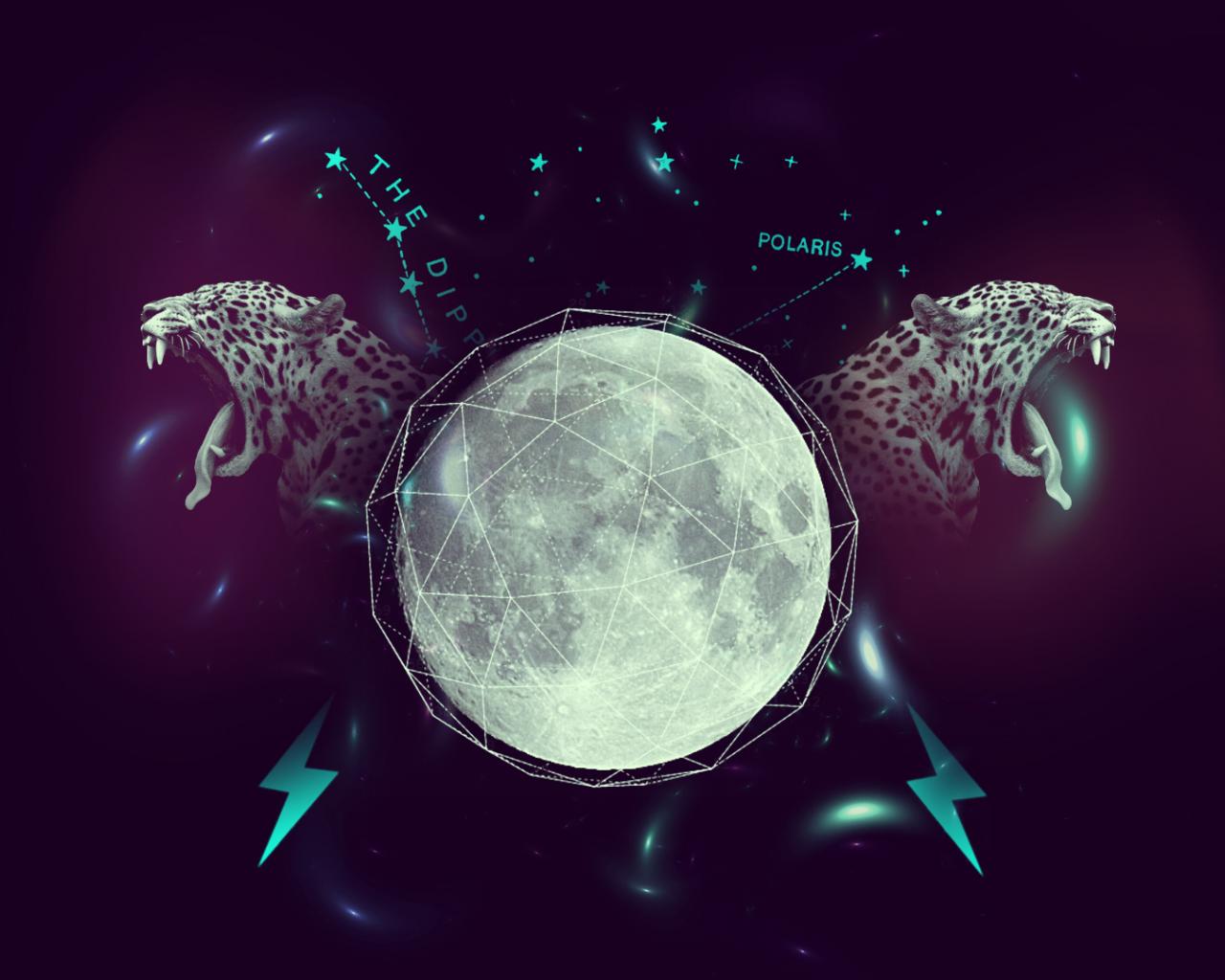 Wallpaper Black background, Moon, Stars, Panther