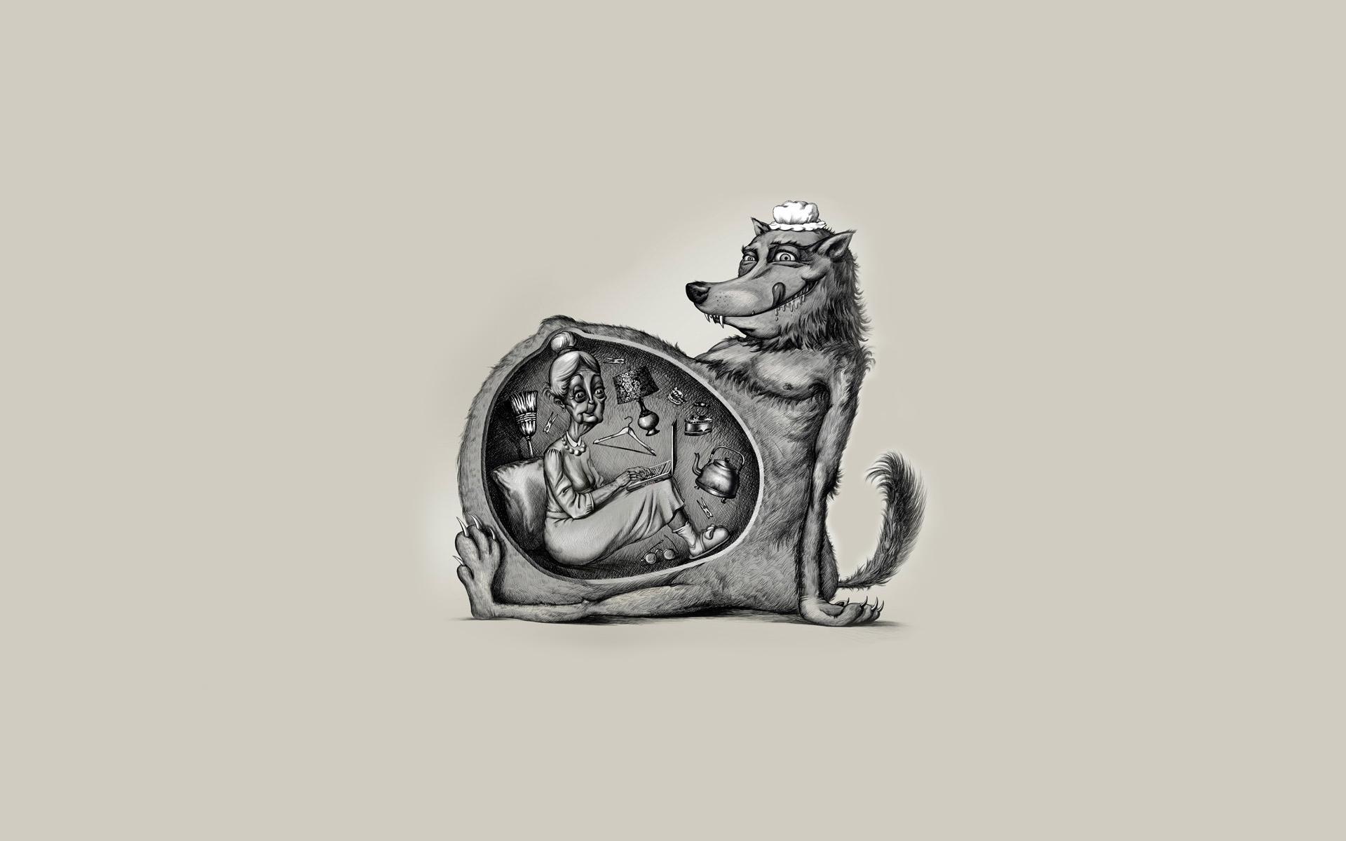 Wallpaper laptop, wolf, red hood, grandmother