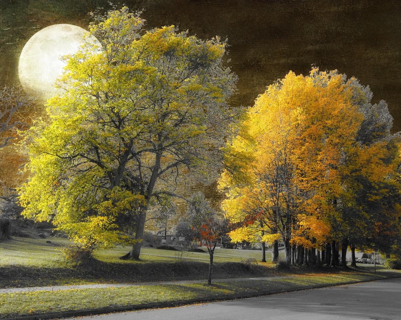 Wallpaper Trees, Street, Park, Moon