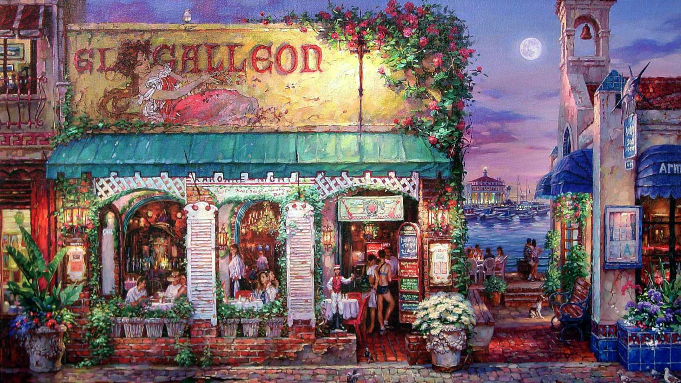 » Wallpaper Night street, Moon