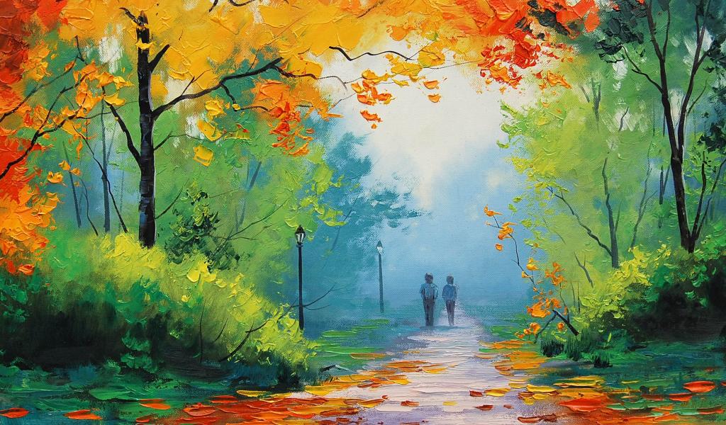 Wallpaper Road, Leaves, Cute couple, Autumn leaves