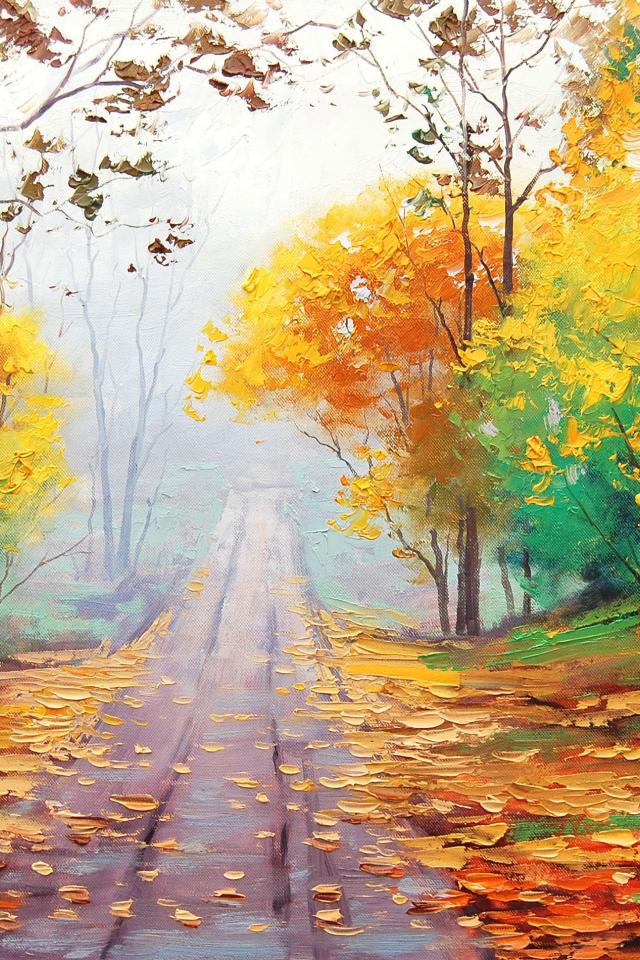 Wallpaper Road, Fog, Leaves, Autumn leaves