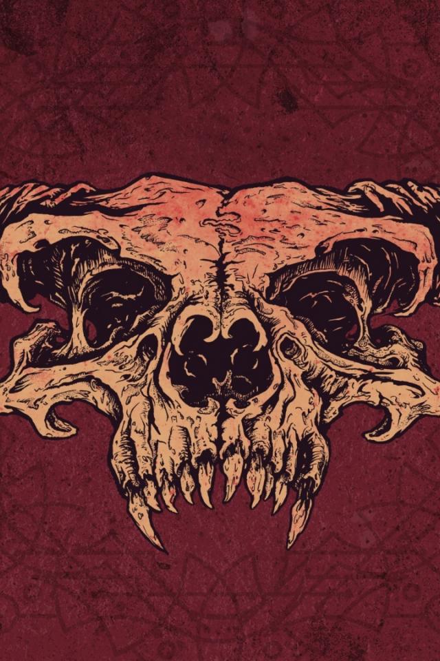 Wallpaper Skeleton, Red background, Skull, horn, teeth, anarchy