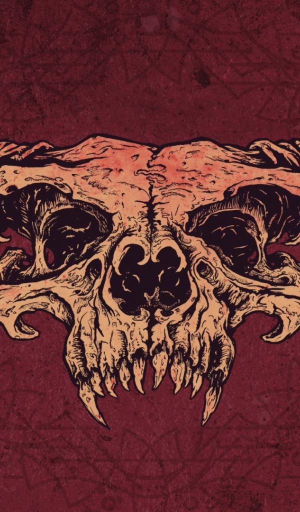 Wallpaper Skeleton, Red background, Skull, horn, teeth, anarchy