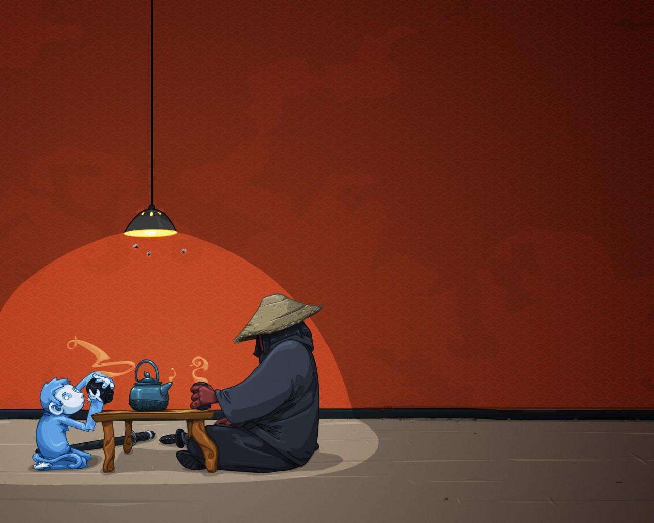 Wallpaper Tea ceremony with monkey