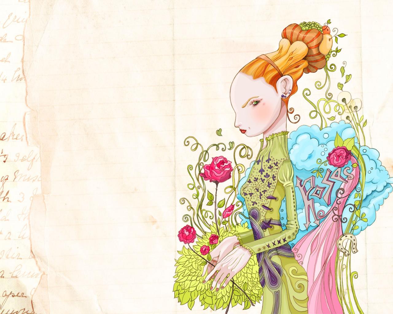 Wallpaper Lady with roses