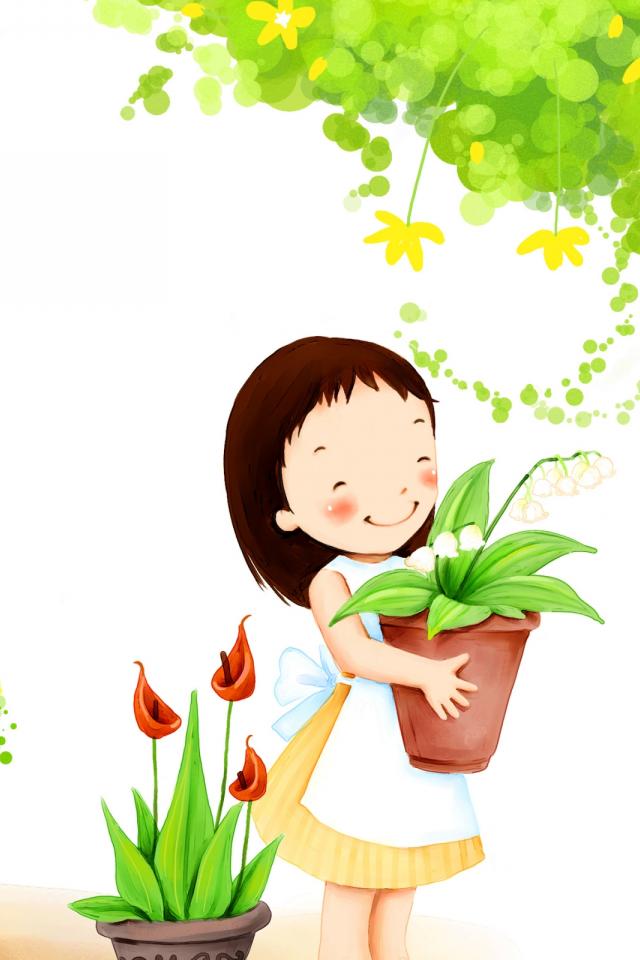Wallpaper Little Girl with Flowers