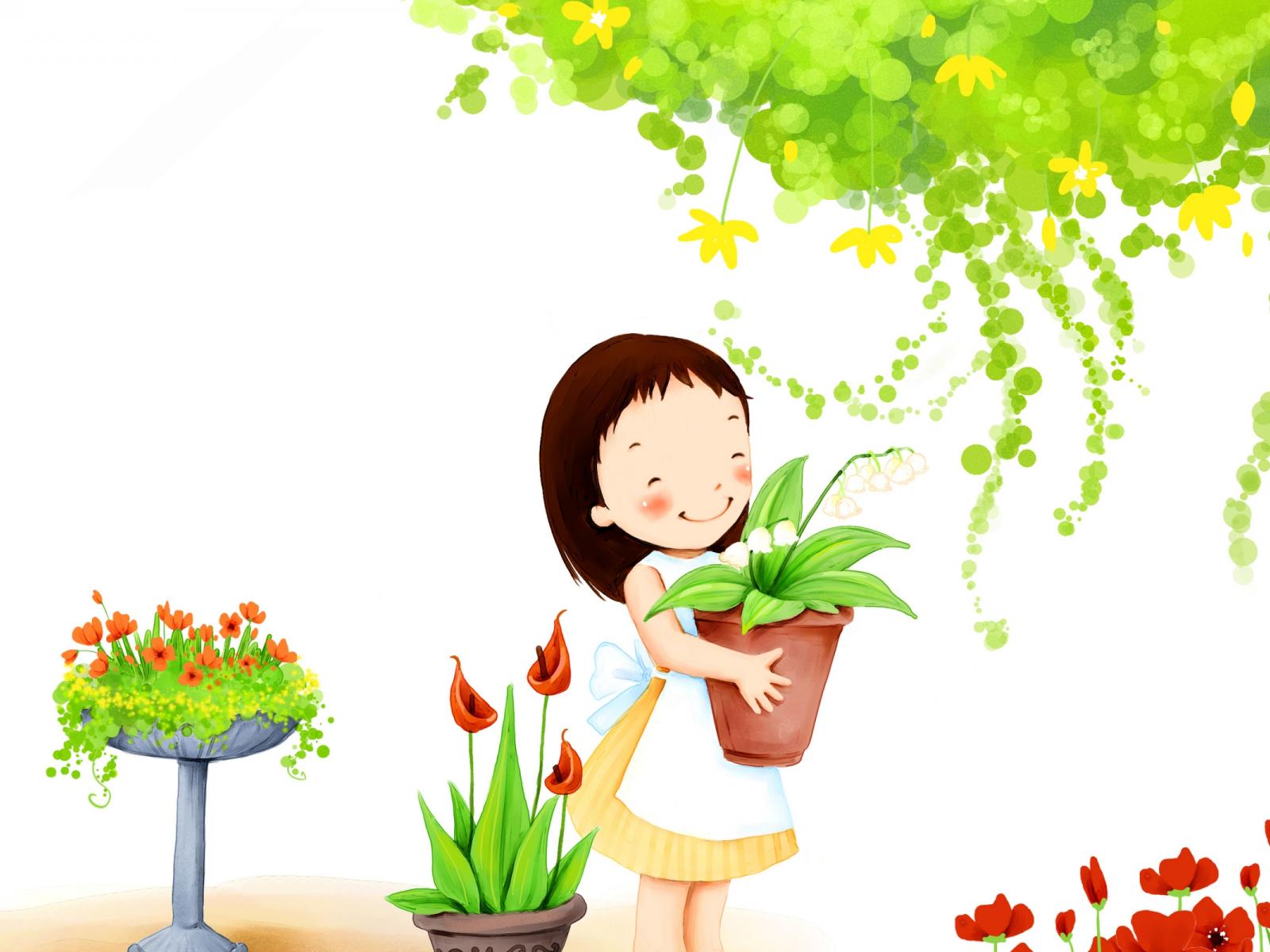 Wallpaper Little Girl with Flowers