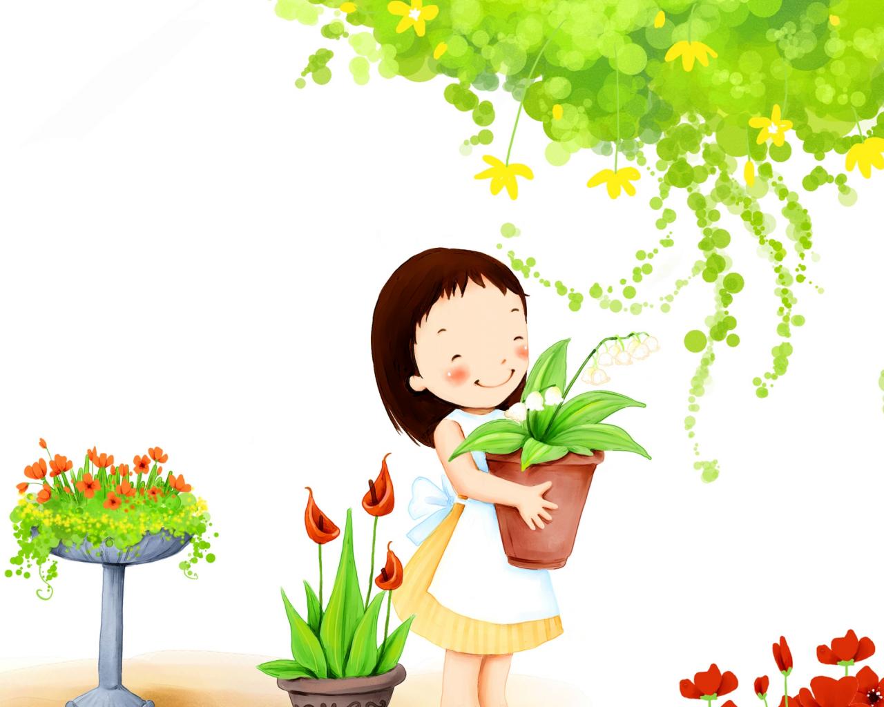 Wallpaper Little Girl with Flowers