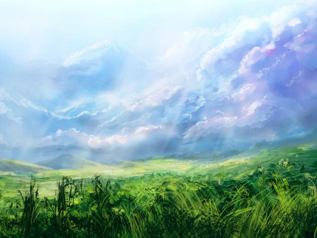 Wallpaper Blue sky over meadows