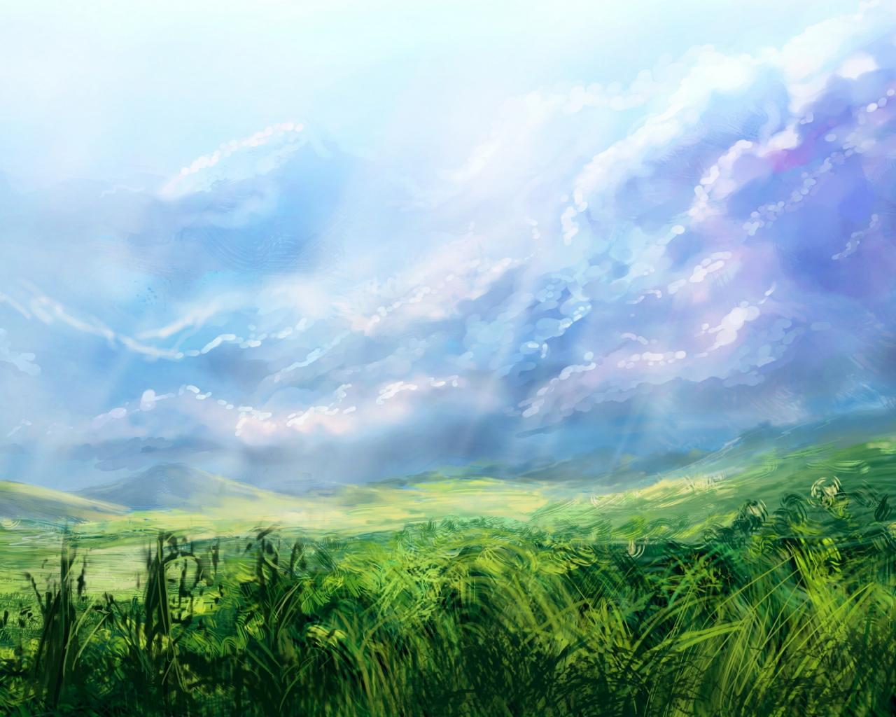 Wallpaper Blue sky over meadows