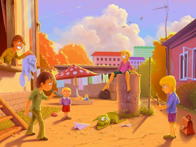 » Wallpaper Playing in the yard