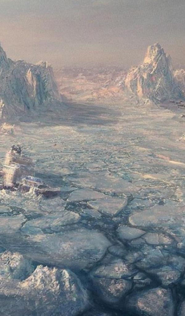 Wallpaper Black ship stuck in ice
