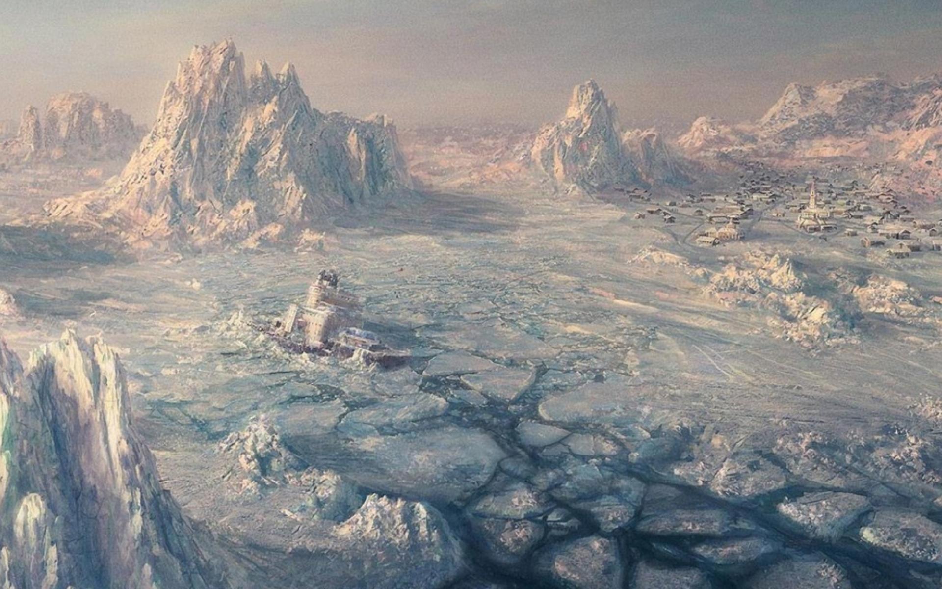 Wallpaper Black ship stuck in ice