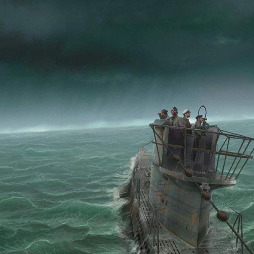 Wallpaper The submarine during the storm