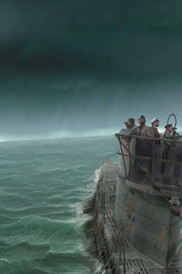 Wallpaper The submarine during the storm