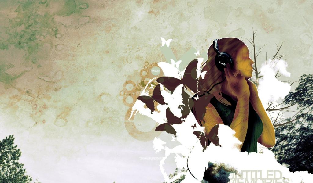 Wallpaper Girl listening to music in headphones