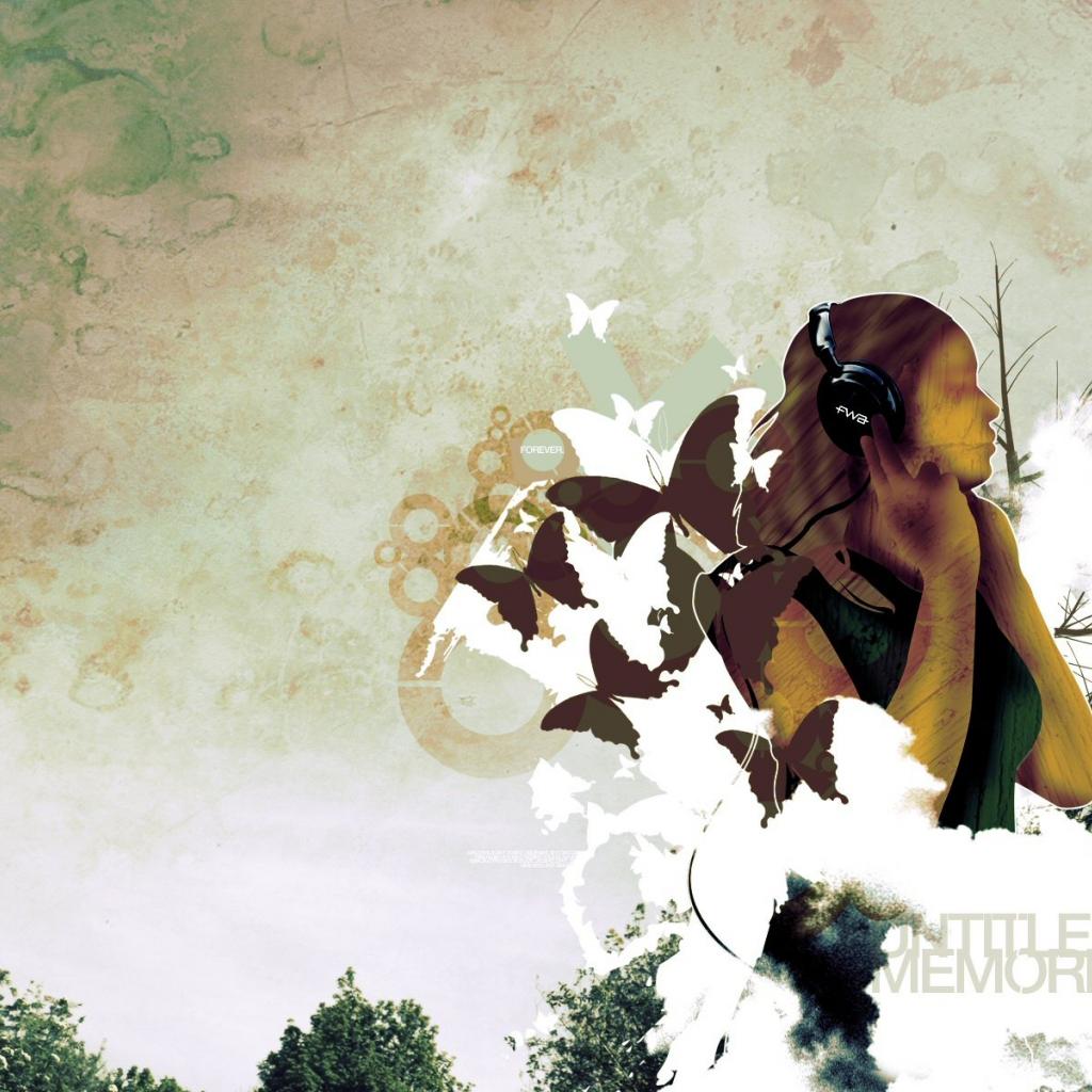 Wallpaper Girl lying on the floor and listening to music on headphones