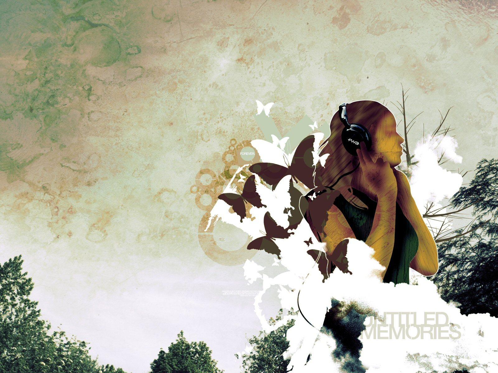 Wallpaper Girl lying on the floor and listening to music on headphones