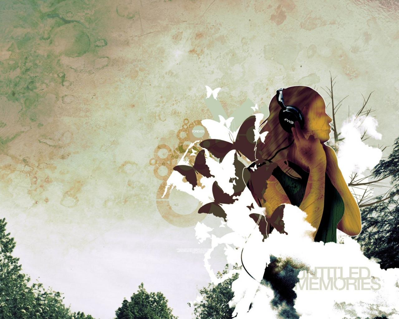 Wallpaper Girl listening to music in headphones