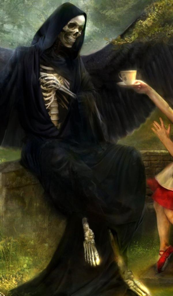 Wallpaper Death girl offers a cup of tea