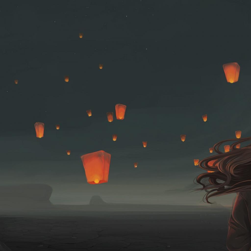 Wallpaper Chinese lanterns behind girls