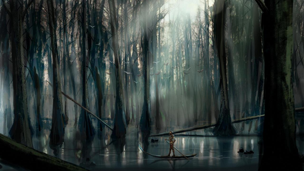 Wallpaper A boat trip in the dead forest