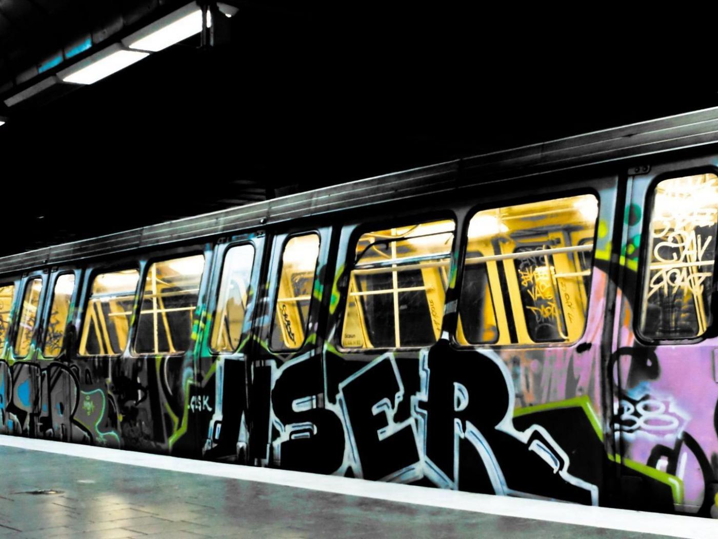 Wallpaper Subway train painted graffiti