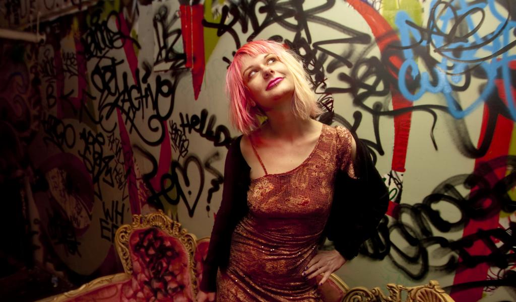 Wallpaper Girl on the painted wall background