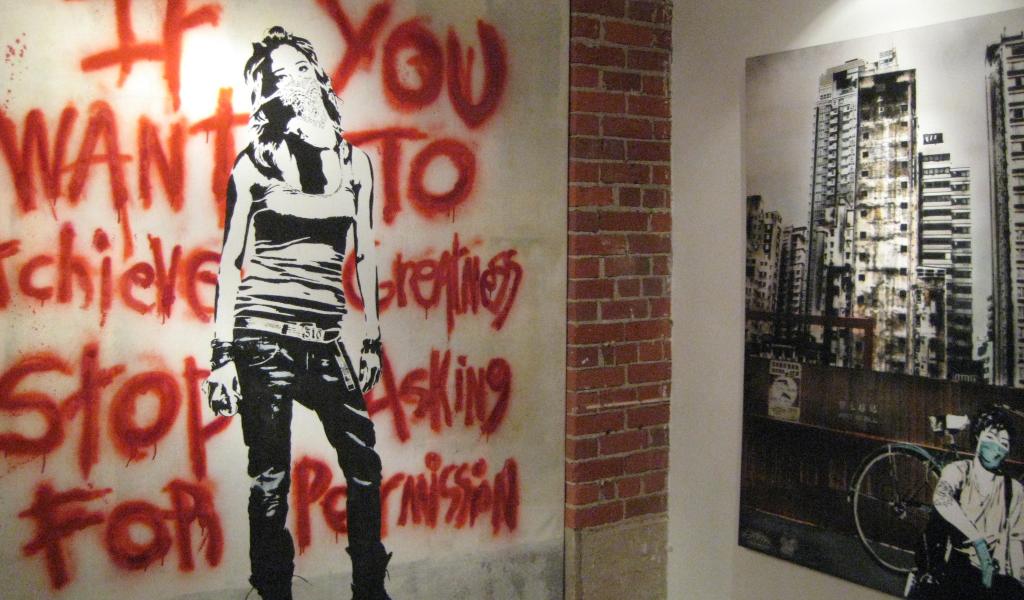 Wallpaper Girl on the painted wall background