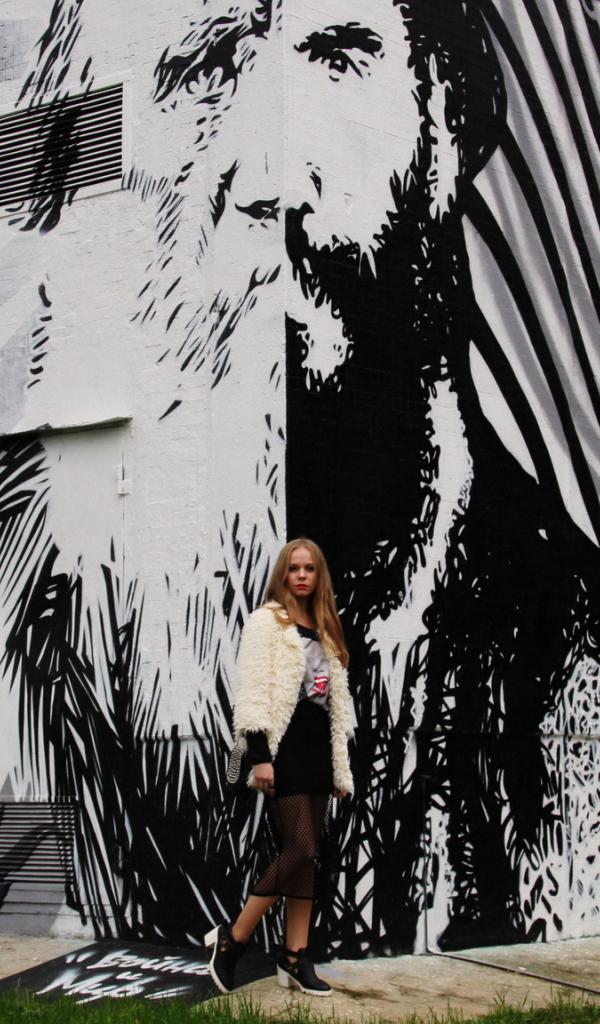 Wallpaper Girl in white dress on background of the graffiti
